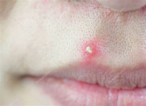 Benjolan merah dengan bagian putih atau kuning di tengah (berisi nanah).